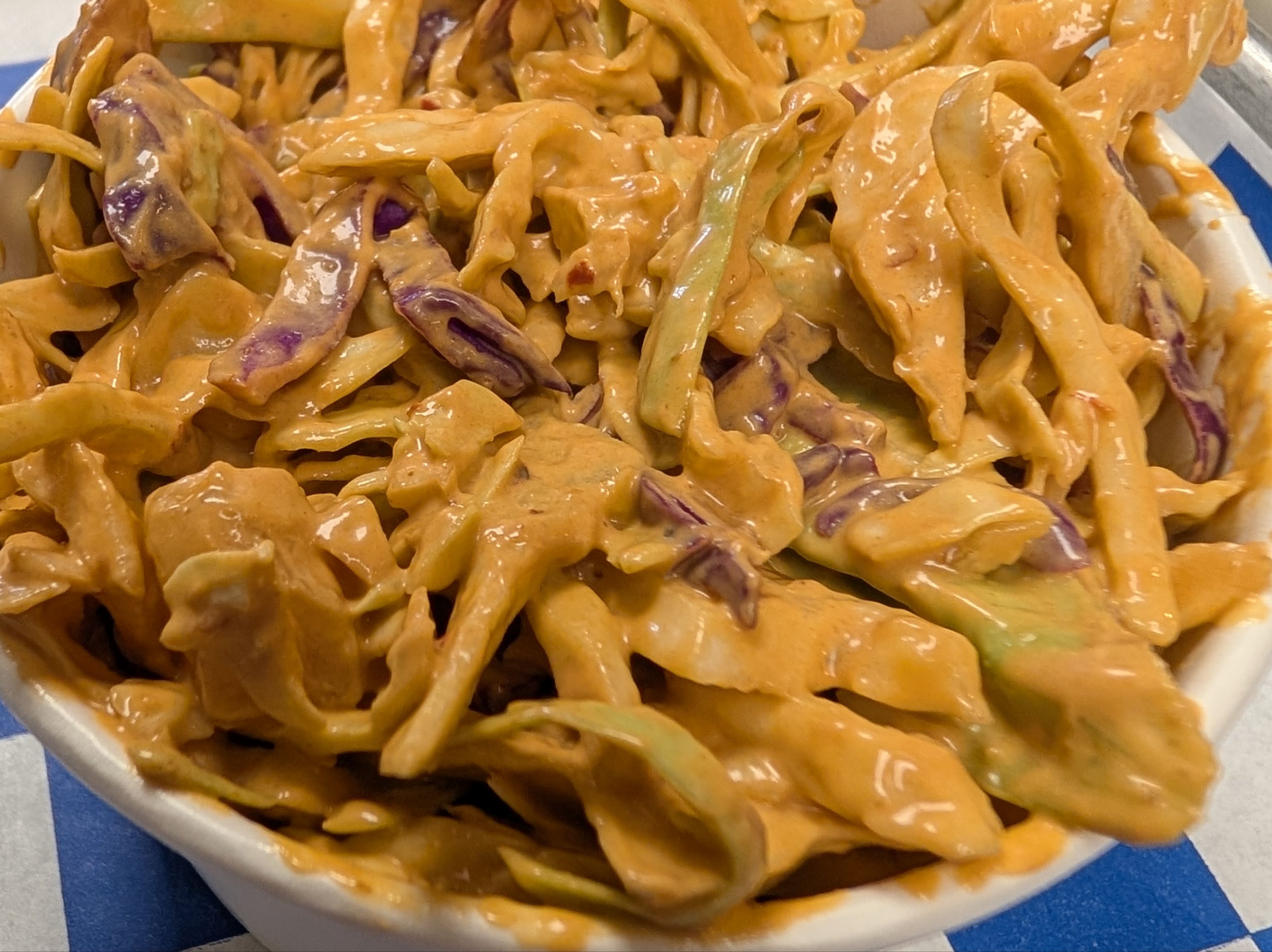 Creamy coleslaw with tangy chamoy, fresh pineapple and a hint of spice.